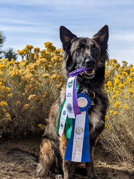 My sweet summer child. The youngest of the group, son to Redrum, nephew to Omaha. Riddick is just starting is sports career with us but I know he will go far and do great things. He has already earned his UKC Championship and has a Best in Show. He is in training for NADD, NASDA, Ringsport, and plays Rally/ OB with me. His favorite thing so far is FastCATS.